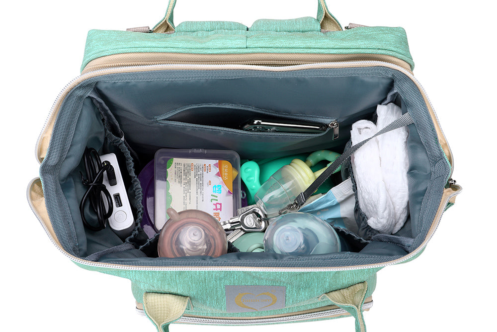 You will be amazed by the amount of space you will find on the inside. Equipped with 2 main compartments and 14 functional pockets. Our Creativity Department designed it to meet all the demands of a busy parent. Various pockets will help you organize all kinds of items neatly. The unique"fish-mouth"opening and easy-access zipper ensure that everything is easily accessible! The large capacity can hold all your baby essentials including a laptop or breast pump.